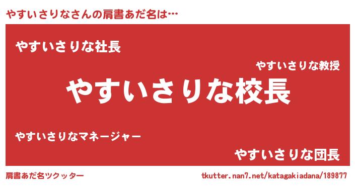 | 胡散臭い通販商品みたいなあだ名 | 『来世でも幸せになれる健康食品…その名も「やすいさりな」』 |