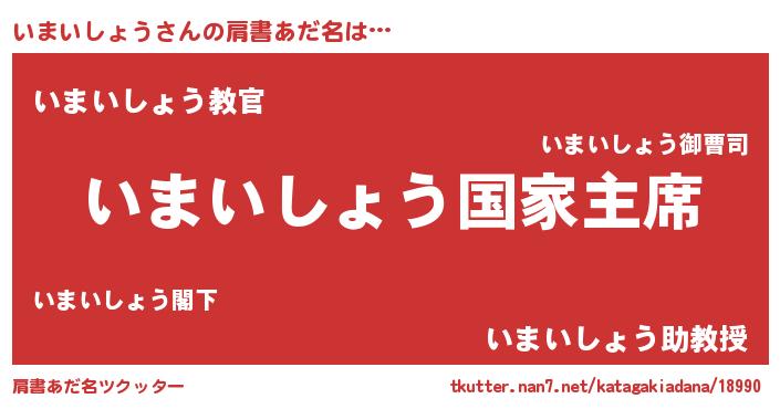 | 女子向けラノベタイトル風あだ名 | 『いまいしょうの雑貨屋さん』 |