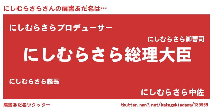 | 意味不明あだ名 | 『にしむらさらフォーエバー』 |