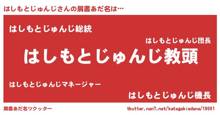 | 胡散臭い通販商品みたいなあだ名 | 『来世でも幸せになれる健康食品…その名も「はしもとじゅんじ」』 |