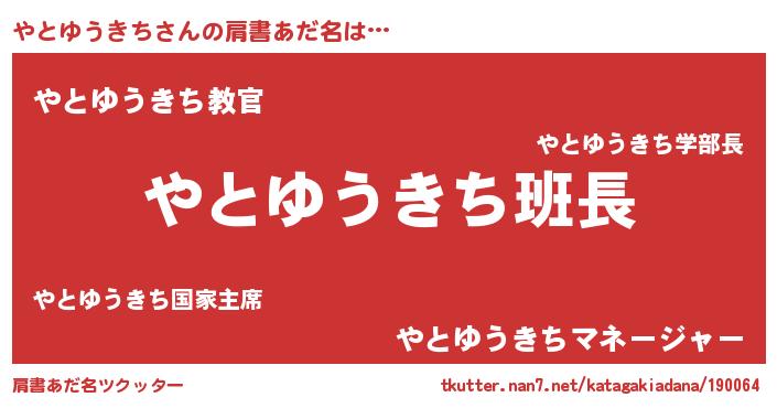 | ポケモン風あだ名 | 『ヒヤトユウキチ』『ヤートイ』 |