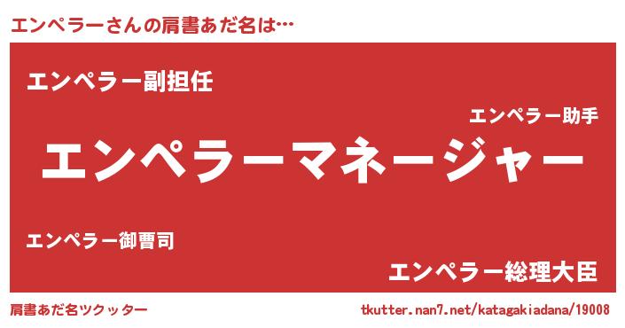 | 男性向けラノベタイトル風あだ名 | 『エンペラーに滅ぼされるだけの簡単なお仕事です』 |