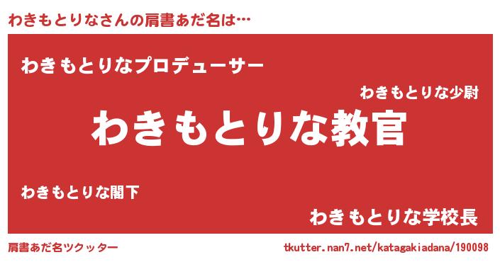 | ヒーロー風カッコイイあだ名 | 『仮面ワキダー』『黄金騎士ワキ』 |