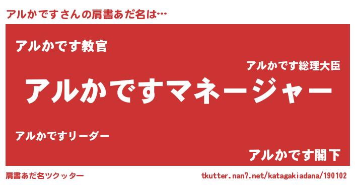 | 男性向けラノベタイトル風あだ名 | 『はたらくアルかですさま!』 |
