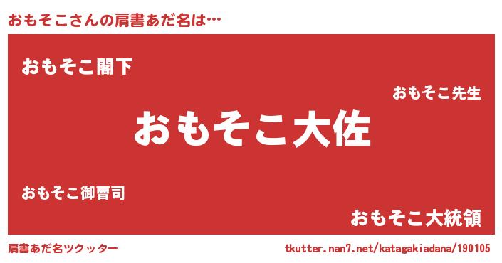 | 男性向けラノベタイトル風あだ名 | 『オモソコスレイヤー』『おもそこの憂鬱』 |