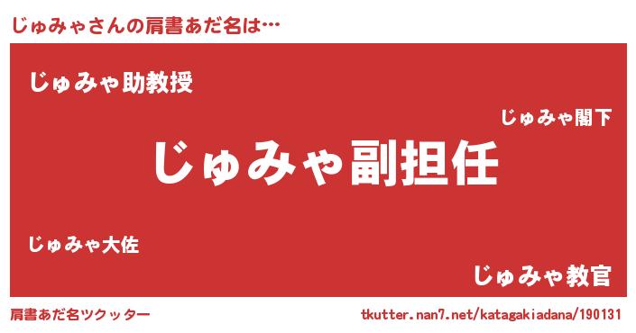 | 意味不明あだ名 | 『永久保存じゅみゃ』『自称じゅみゃ』 |