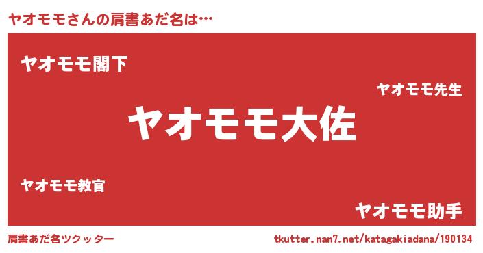 | 欧米人風あだ名 | 『トリンドルヤオモモ』 |