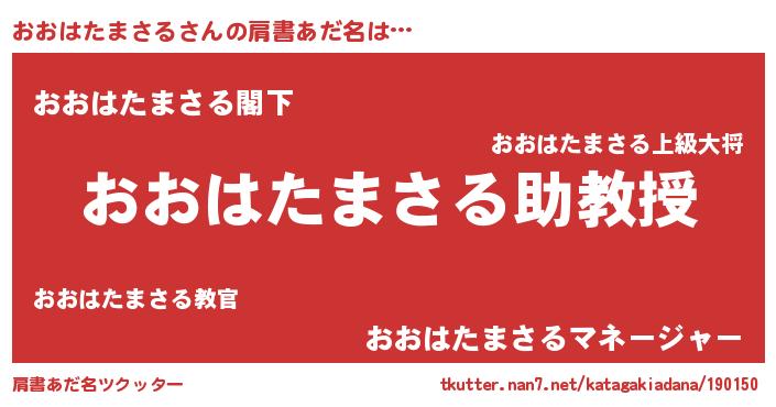 | 胡散臭い通販商品みたいなあだ名 | 『お金では代えられないマグネット磁石…その名も「おおはたまさる」』 |
