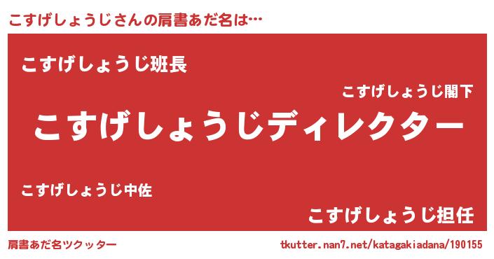 | 欧米人風あだ名 | 『アンジェラ・こすげしょうじ』 |