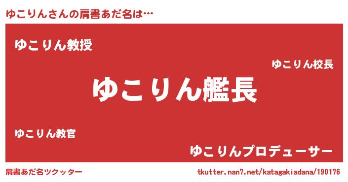 | 男性向けラノベタイトル風あだ名 | 『うちのゆこりんが世界を掌握している!』 |