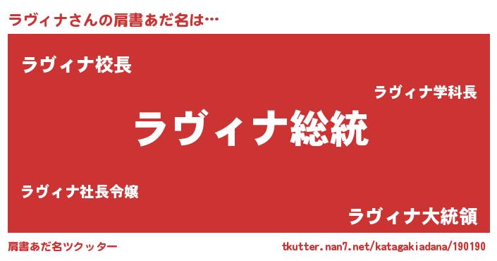 | 意味不明あだ名 | 『自称ラヴィナ』『永久保存ラヴィナ』 |