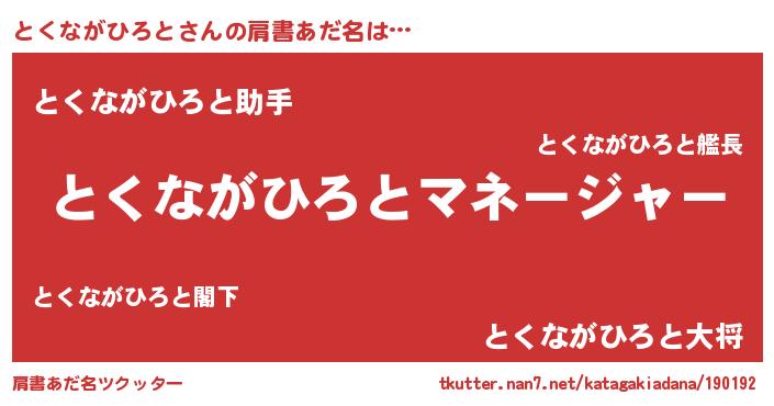 | 男性向けラノベタイトル風あだ名 | 『とくながひろとに滅ぼされるだけの簡単なお仕事です』 |
