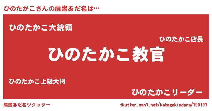 | 男性向けラノベタイトル風あだ名 | 『この素晴らしい世界にひのたかこを!』 |