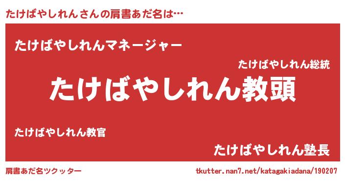 | 意味不明あだ名 | 『永久保存たけばやしれん』 |