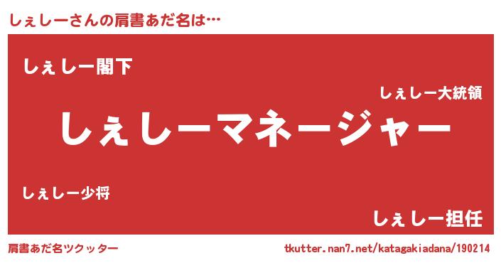 | 男性向けラノベタイトル風あだ名 | 『はたらくしぇしーさま!』 |