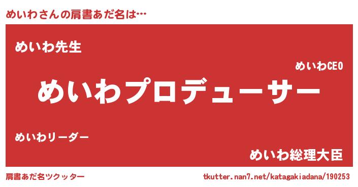 | 意味不明あだ名 | 『永久保存めいわ』『めいわフォーエバー』 |