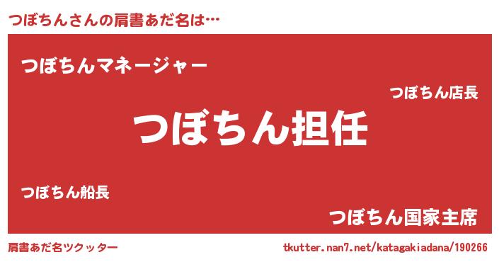 | ヒーロー風カッコイイあだ名 | 『ネオツボチン』『ウルトラつぼちんマン』 |
