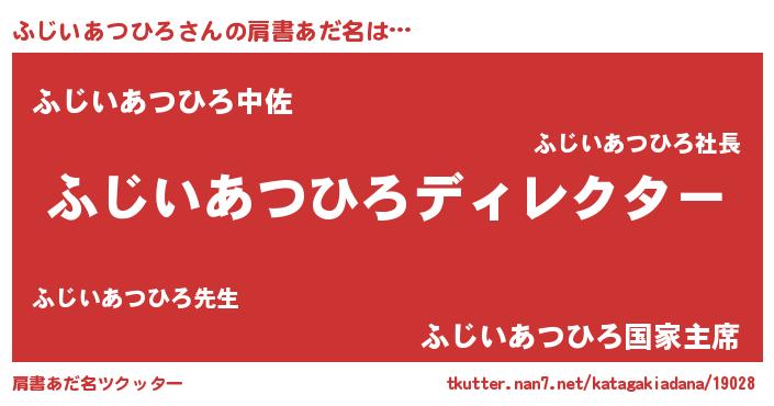 | 男性向けラノベタイトル風あだ名 | 『はたらくふじいあつひろさま!』 |