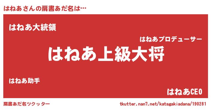 | ポケモン風あだ名 | 『ハネキング』『ハネアダネ』 |