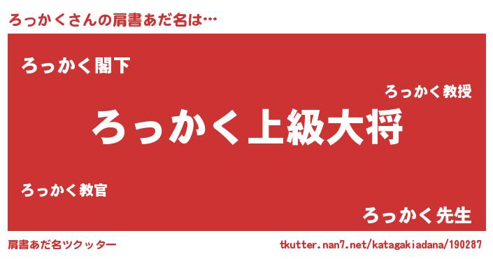 | ヘコむあだ名 | 『ろっかく(遠い目)』『ろっっ子』 |