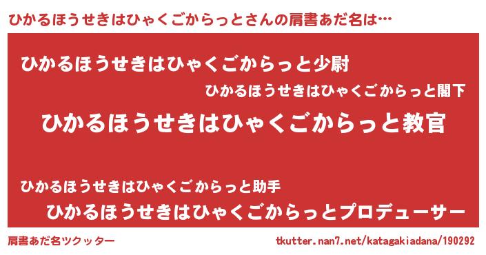 | ヘコむあだ名 | 『ひかるほうせきはひゃくごからっと(遠い目)』 |