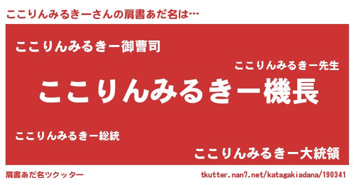 | 胡散臭い通販商品みたいなあだ名 | 『億万長者になれる霊験あらたかなお札…その名も「ここりんみるきー」』 |