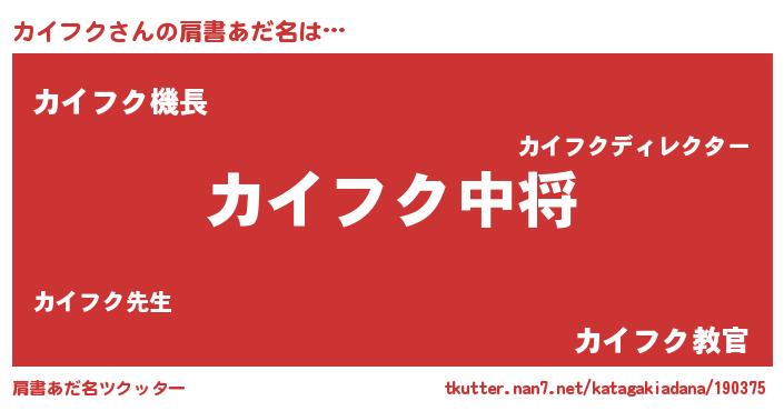 | ヘコむあだ名 | 『カイフク(震え声)』『カイっちょ』 |
