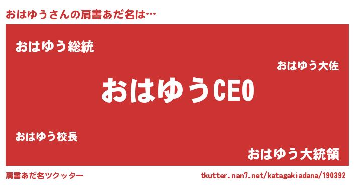 | ヒーロー風カッコイイあだ名 | 『スーパーオハユウ』『ネオオハユウ』 |