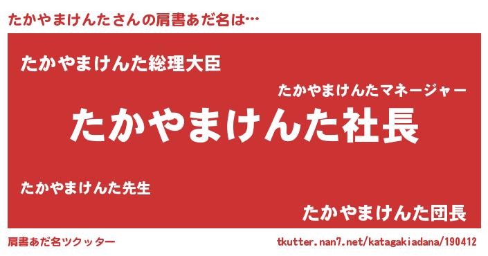 | 男性向けラノベタイトル風あだ名 | 『タカヤマケンタアートオンライン』 |