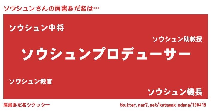| 意味不明あだ名 | 『ニラ科ソウシュン属』『自称ソウシュン』 |