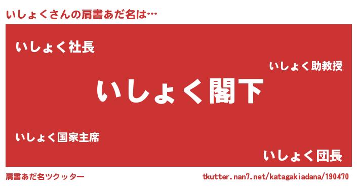 | 意味不明あだ名 | 『自称いしょく』『ペロリンいしょく』 |