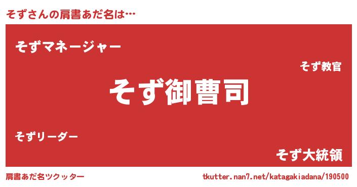 | 男性向けラノベタイトル風あだ名 | 『そずの憂鬱』『はたらくそずさま!』 |