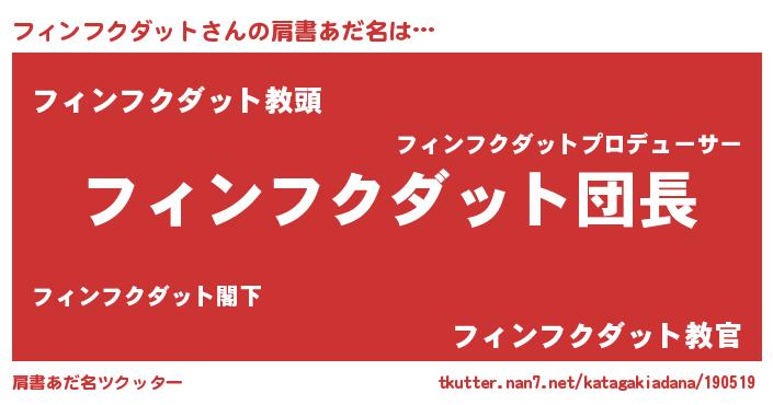 | 男性向けラノベタイトル風あだ名 | 『ダンジョンにフィンフクダットを求めるのは間違っているだろうか』 |