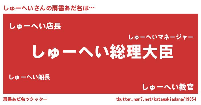 | 欧米人風あだ名 | 『しゅーへいクリステル』 |