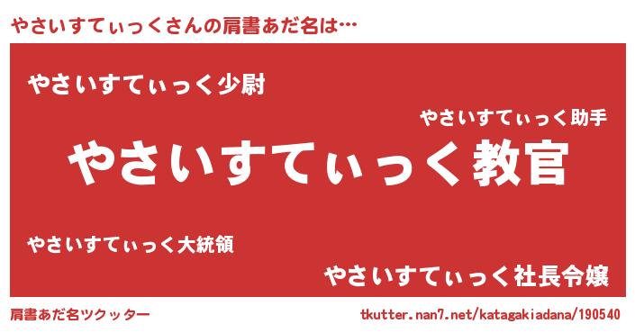 | ヒーロー風カッコイイあだ名 | 『仮面ヤサダー』『ネオヤサイスティック』 |