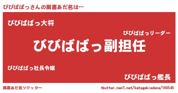| 意味不明あだ名 | 『永久保存びびばばっ』 |