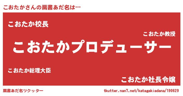 | 男性向けラノベタイトル風あだ名 | 『こおたかに滅ぼされるだけの簡単なお仕事です』 |