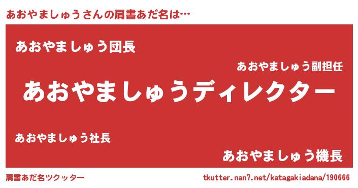 | 男性向けラノベタイトル風あだ名 | 『あおやましゅうに滅ぼされるだけの簡単なお仕事です』 |