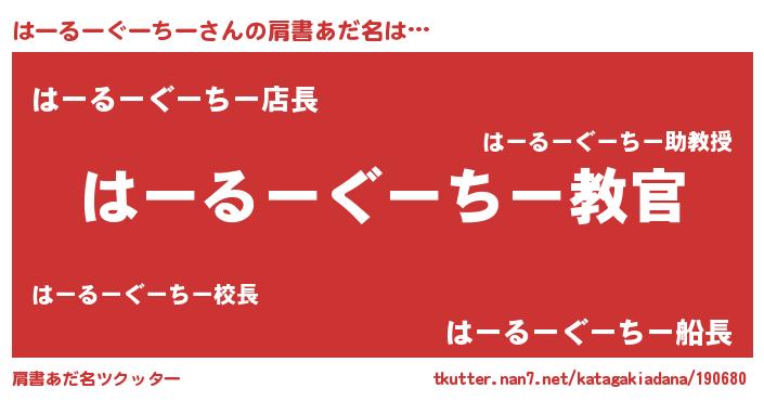| 意味不明あだ名 | 『住所不定無職はーるーぐーちー(79歳)』 |