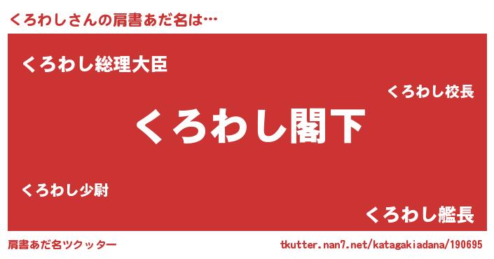 | 女子向けラノベタイトル風あだ名 | 『くろわしなんてお断りですっ。』 |