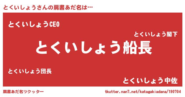 | ピコ太郎風あだ名 | 『トコ次郎』『トク一郎』『ピト次郎』 |