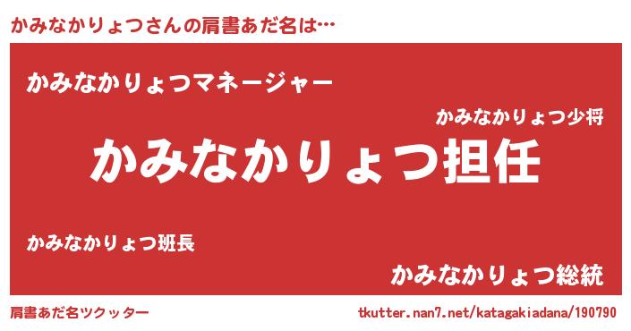 | ヘコむあだ名 | 『かみなかりょつ(苦笑)』『かみを』 |
