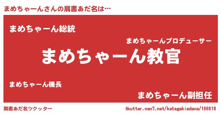 | 男性向けラノベタイトル風あだ名 | 『この素晴らしい世界にまめちゃーんを!』 |