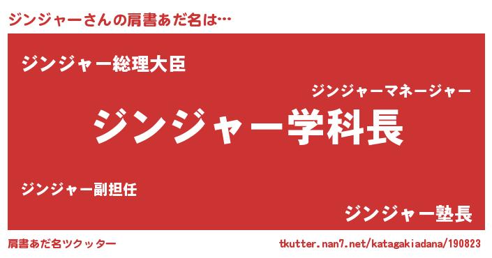 | 男性向けラノベタイトル風あだ名 | 『おまえをオタクにしてやるから、俺をジンジャーにしてくれ! 』 |