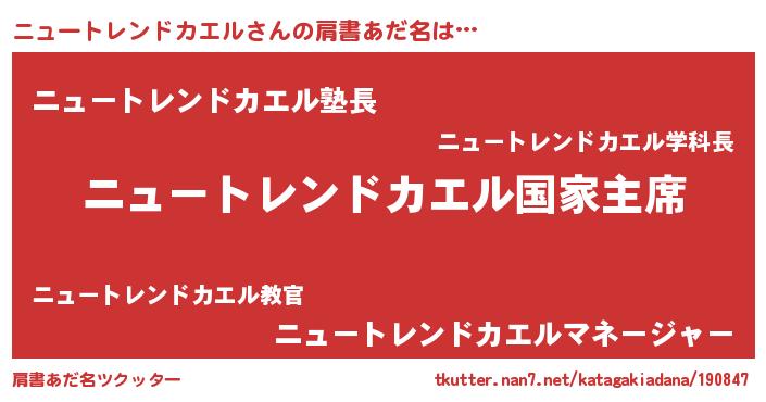 | ポケモン風あだ名 | 『ニューダネ』『ヒニュートレンドカエル』 |