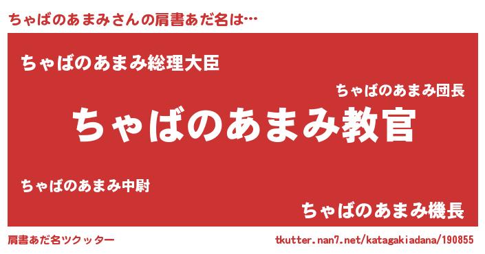 | 男性向けラノベタイトル風あだ名 | 『この素晴らしい世界にちゃばのあまみを!』 |