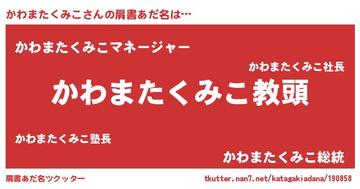 | 意味不明あだ名 | 『永久保存かわまたくみこ』 |