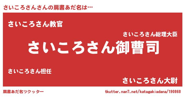 | 胡散臭い通販商品みたいなあだ名 | 『必ず成功する霊験あらたかなお札…その名も「さいころさん」』 |