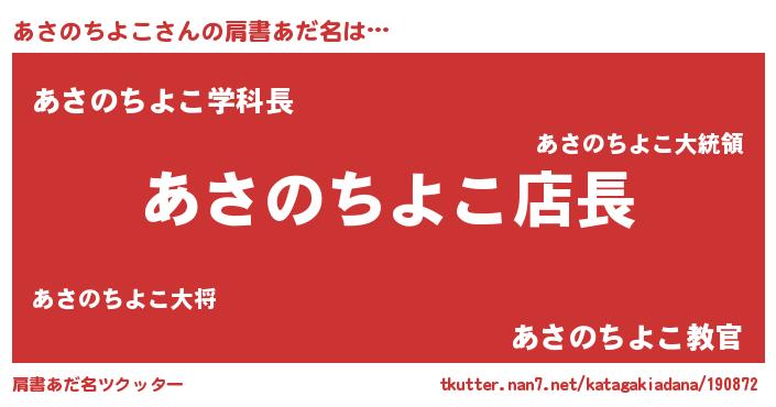 | 女子向けラノベタイトル風あだ名 | 『(仮)あさのちよこのやんごとなき事情』 |