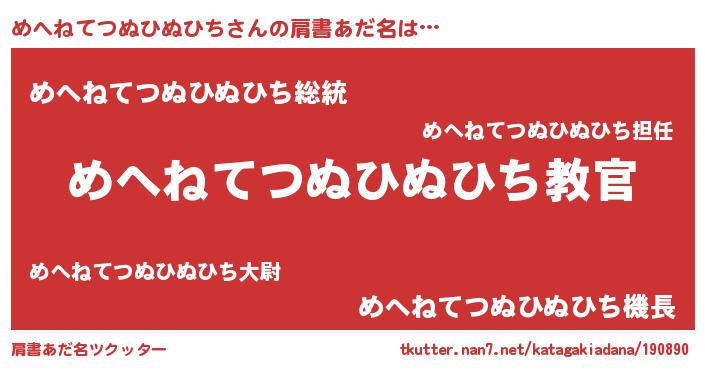 意味不明あだ名 | 『住所不定無職めへねてつぬひぬひち(50歳)』 |